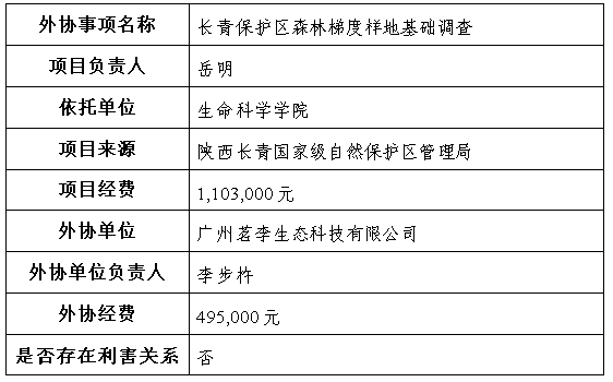 经项目负责人申请、所在单位审核,现将陕西长青国家级自然保护区2025年中央财政林业草原生态保护恢复资金国家级自然保护区项目的外协事项公示如下: