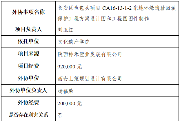 经项目负责人申请、所在单位审核,现将鱼包头项目CA16-13-1-2宗地环壕遗址回填保护工程项目外协公示的外协事项公示如下: