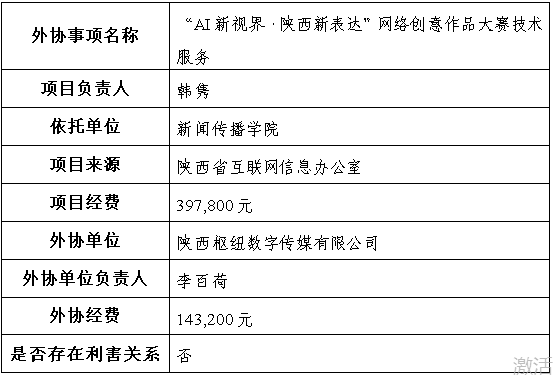 当前位置: 网站首页 > 通知公告 > 正文 “AI新视界•陕西新表达”网络创意作品大赛项目外协公示项目外协公示 浏览量:时间:2025-11-25 经项目负责人申请、所在单位审核,现将“AI新视界·陕西新表达”网络创意作品大赛项目的外协事项公示如下: 公示期:2025年11月25日至2025年11月29日止,共5天。 若对上述外协事项存有异议,请在公示期内向科学技术处以书面形式反映,我们将严格保密,逾期不予受理。 办公电话:029-88302249 传真号码:029-88308972 电子邮箱:cxy@nwu.edu.cn 联系地址:陕西省西安市长安区郭杜教育科技产业区学府大街1号(邮编:710127) 科学技术处 2025年11月25日