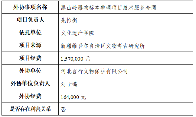 当前位置: 网站首页 > 通知公告 > 正文 新疆维吾尔族自治区哈密市天湖东绿松石采矿遗址项目外协公示 浏览量:时间:2025-12-19 经项目负责人申请、所在单位审核,现将新疆维吾尔族自治区哈密市天湖东绿松石采矿遗址项目的外协事项公示如下: 公示期:2025年12月19日至2025年12月23日止,共5天。 若对上述外协事项存有异议,请在公示期内向科学技术处以书面形式反映,我们将严格保密,逾期不予受理。 办公电话:029-88302249 传真号码:029-88308972 电子邮箱:cxy@nwu.edu.cn 联系地址:陕西省西安市长安区郭杜教育科技产业区学府大街1号(邮编:710127) 科学技术处 2025年12月19日