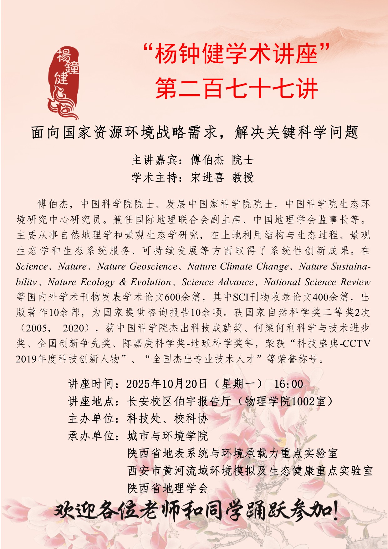 “杨钟健学术讲座”第二百七十七讲:面向国家资源环境战略需求,解决关键科学问题