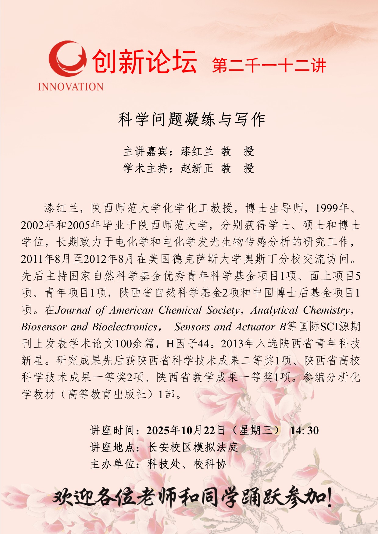 西北大学创新论坛第二千一十二讲:科学问题凝练与写作