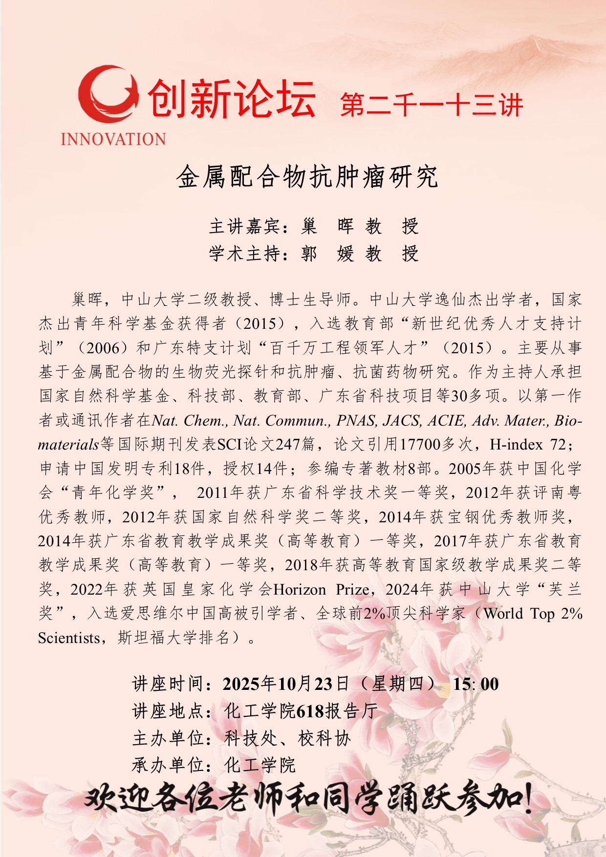西北大学创新论坛第二千一十三讲:金属配合物抗肿瘤研究