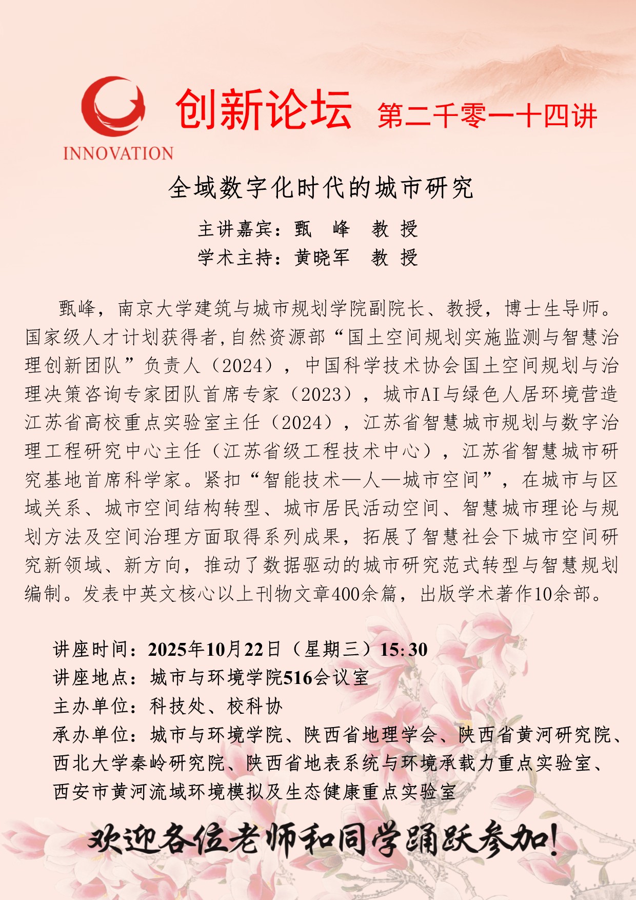 西北大学创新论坛第二千零一十四讲:全域数字化时代的城市研究