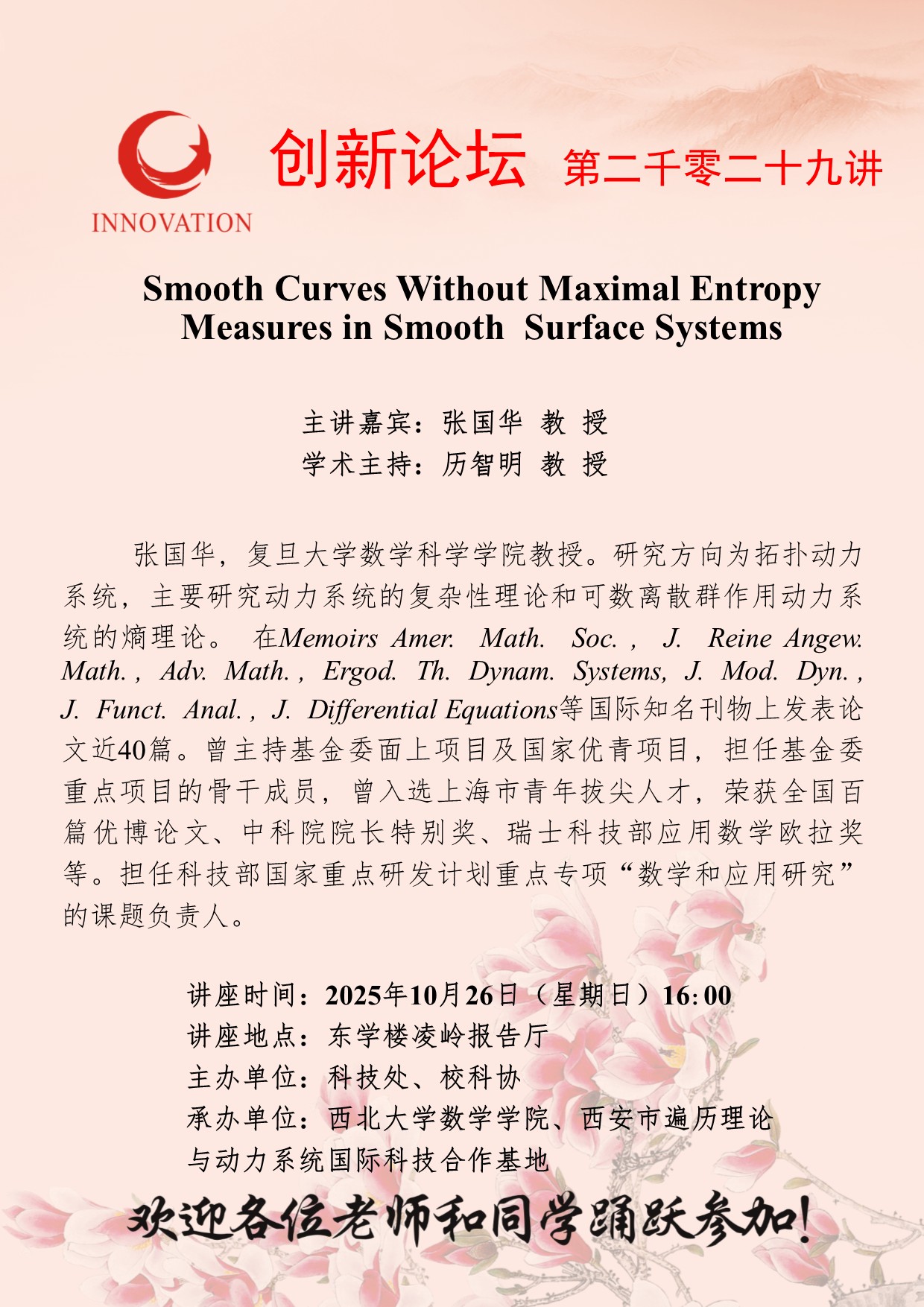 当前位置: 网站首页 > 讲座预告 > 正文 西北大学创新论坛第二千零二十九讲:Smooth Curves Without Maximal Entropy Measures in Smooth Surface Systems 浏览量:时间:2025-10-23