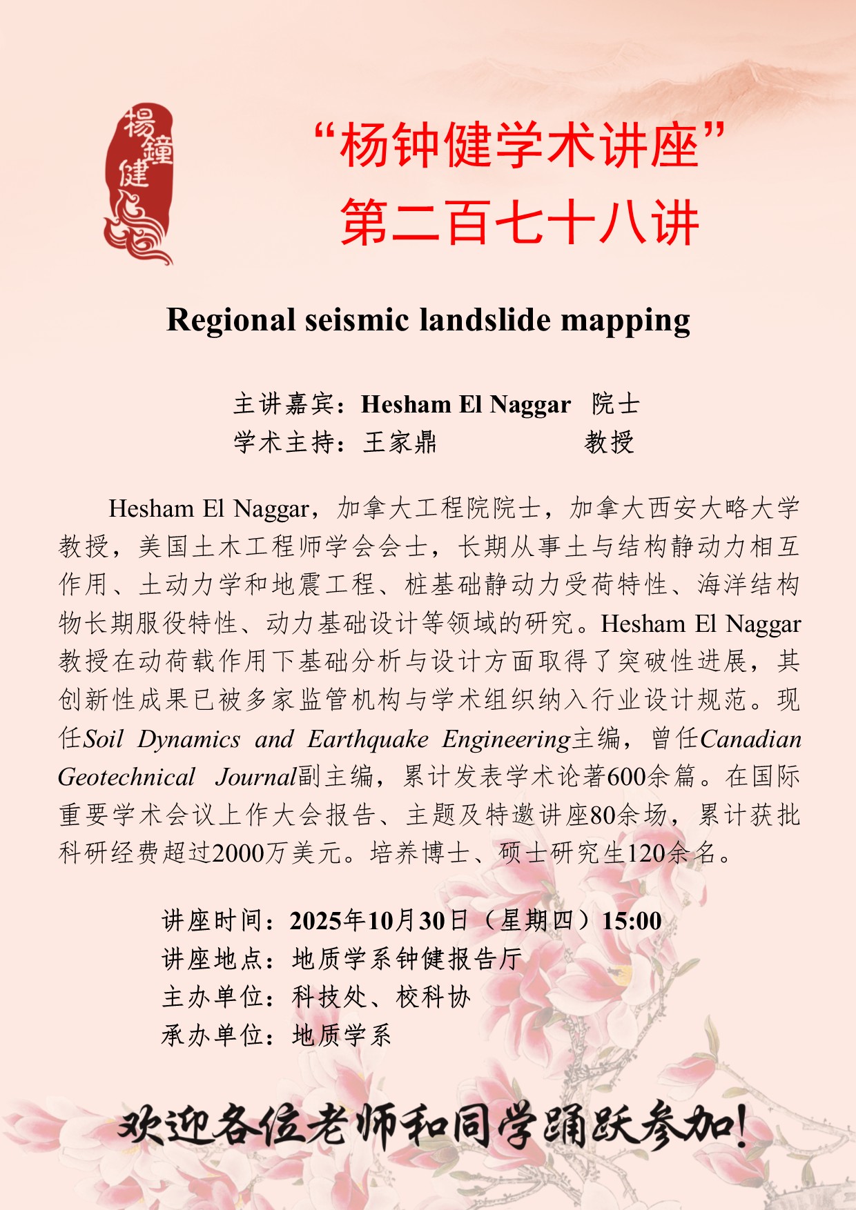 “杨钟健学术讲座”第二百七十八讲:Regional seismic landslide mapping