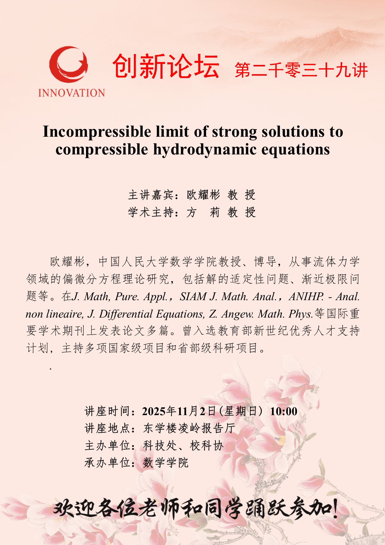 当前位置: 网站首页 > 讲座预告 > 正文 西北大学创新论坛第二千零三十九讲:Incompressible limit of strong solutions to compressible hydrodynamic equations 浏览量:时间:2025-10-30