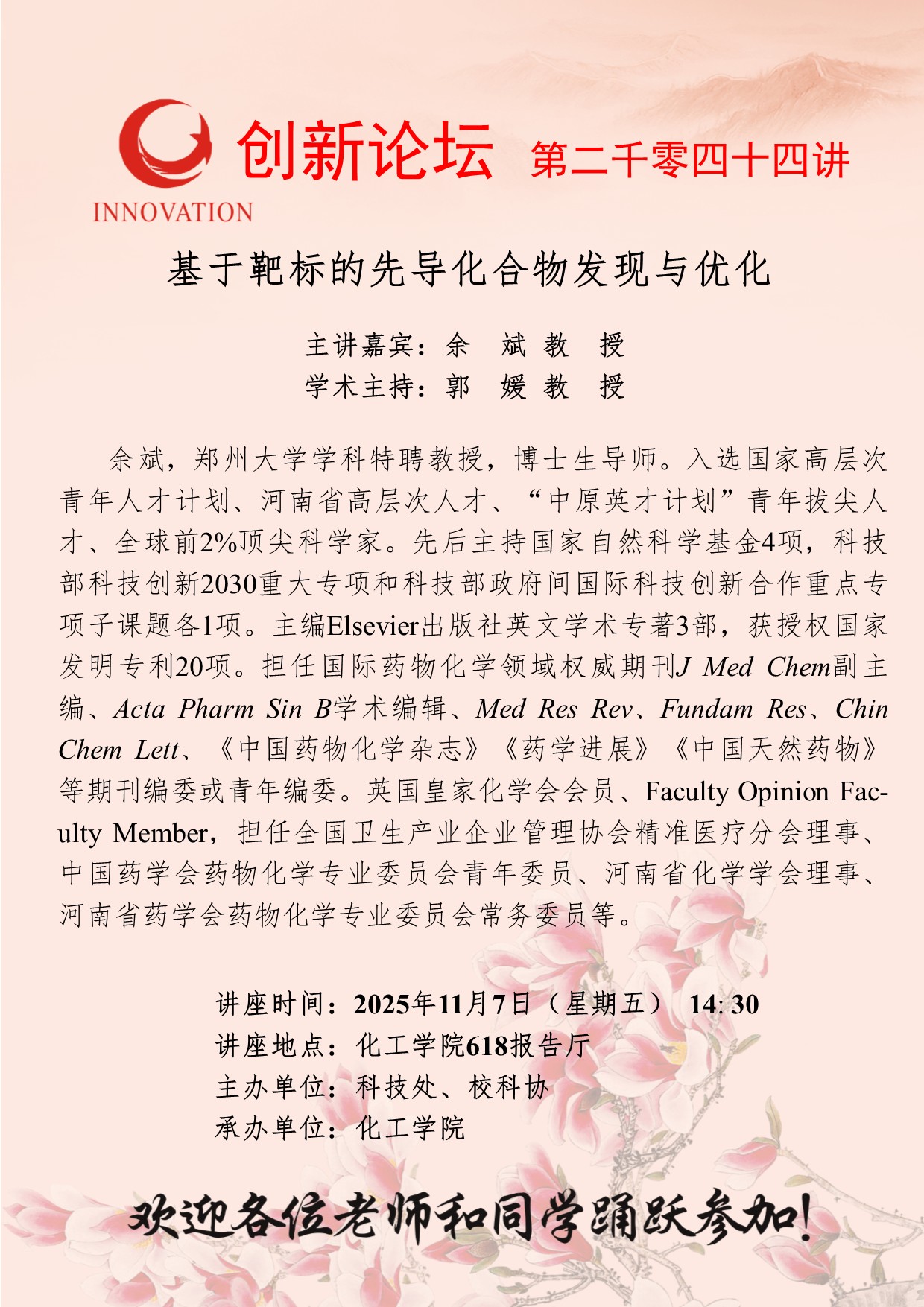 西北大学创新论坛第二千零四十四讲:基于靶标的先导化合物发现与优化
