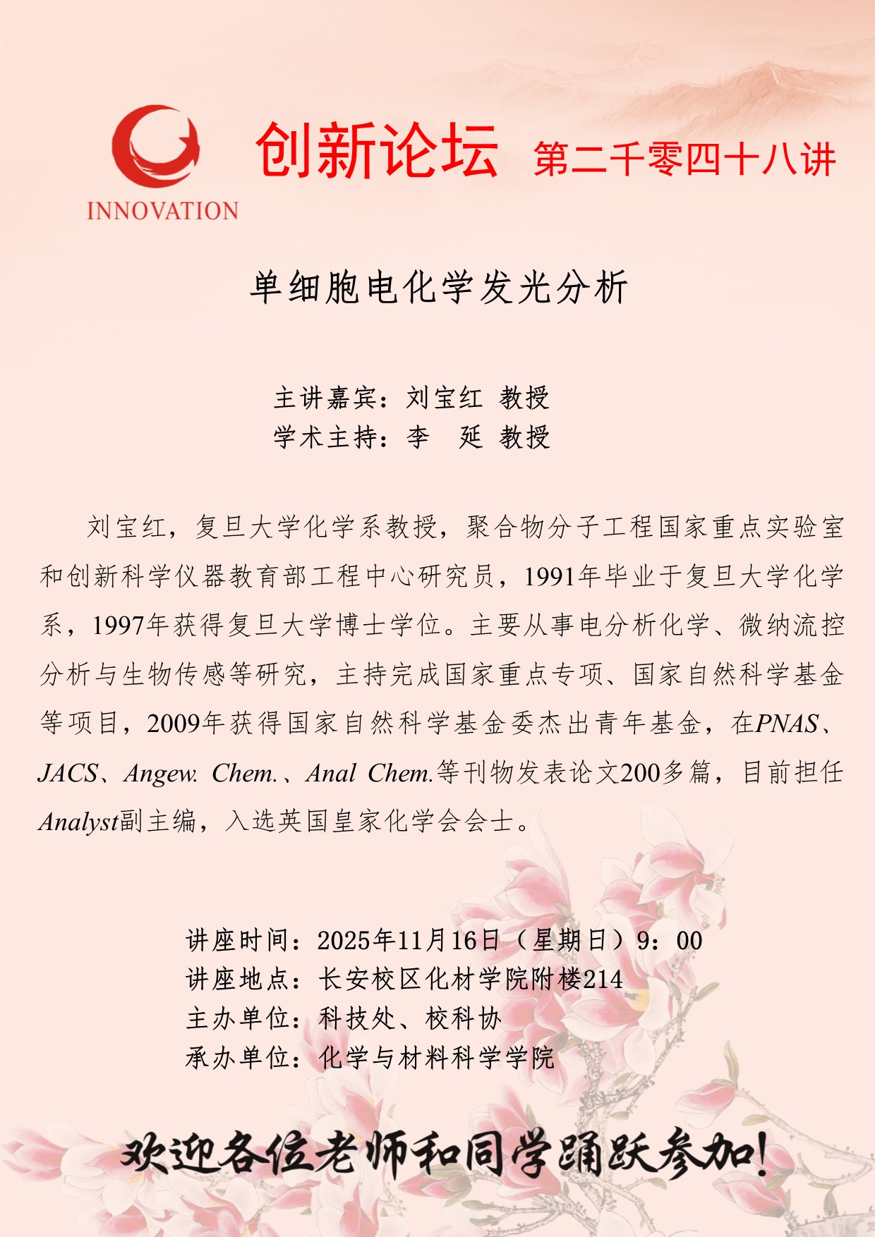 西北大学创新论坛第二千零四十八讲:单细胞电化学发光分析