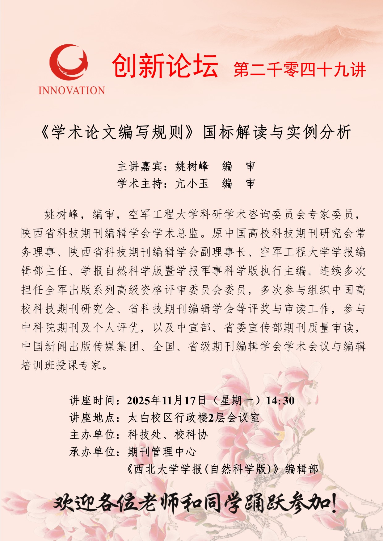 西北大学创新论坛第二千零四十九讲:《学术论文编写规则》国标解读与实例分析