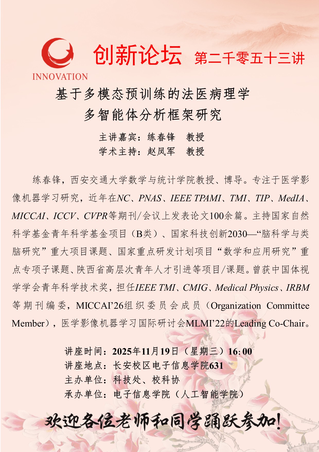 西北大学创新论坛第二千零五十三讲:基于多模态预训练的法医病理学多智能体分析框架研究