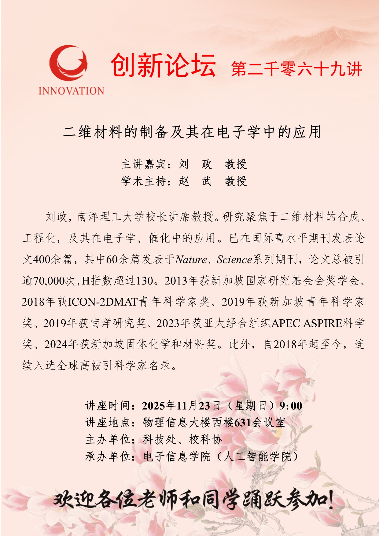 西北大学创新论坛第二千零六十九讲:二维材料的制备及其在电子学中的应用