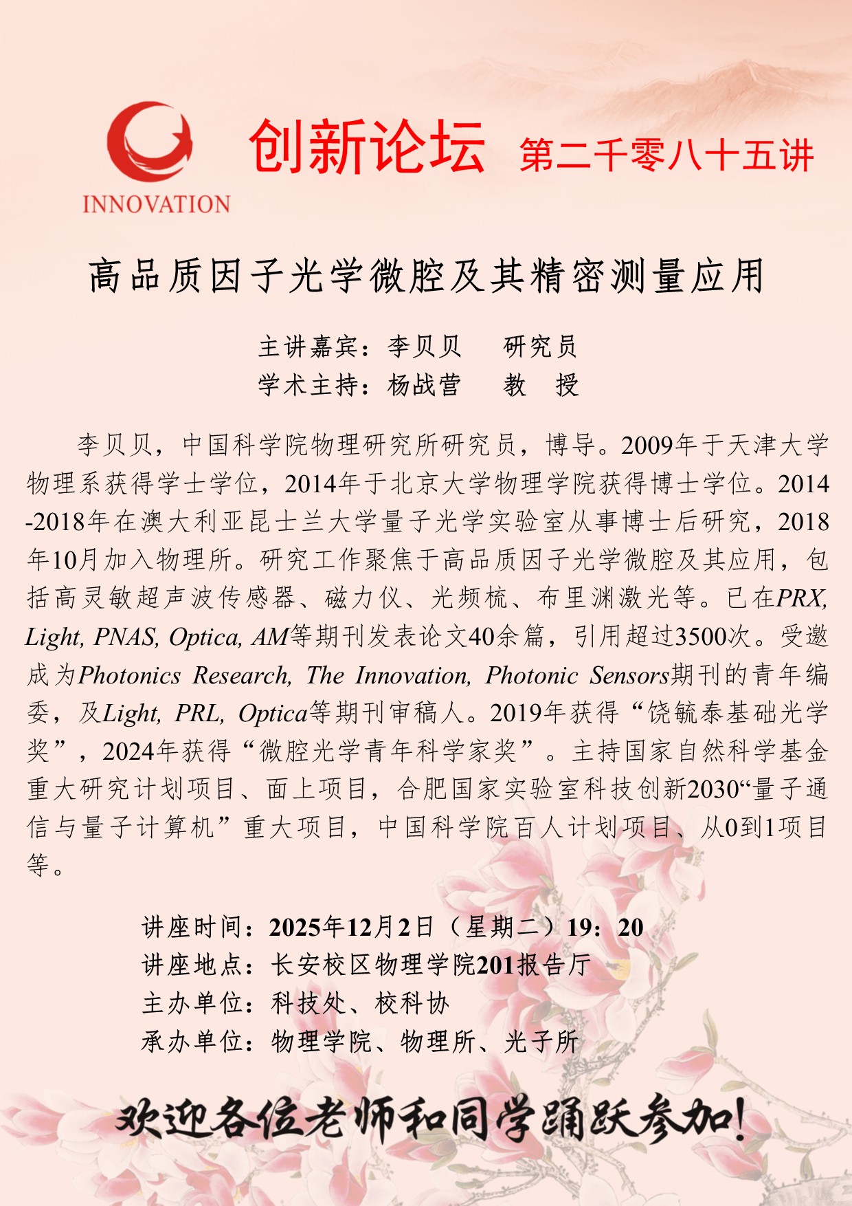 西北大学创新论坛第二千零八十五讲:高品质因子光学微腔及其精密测量应用