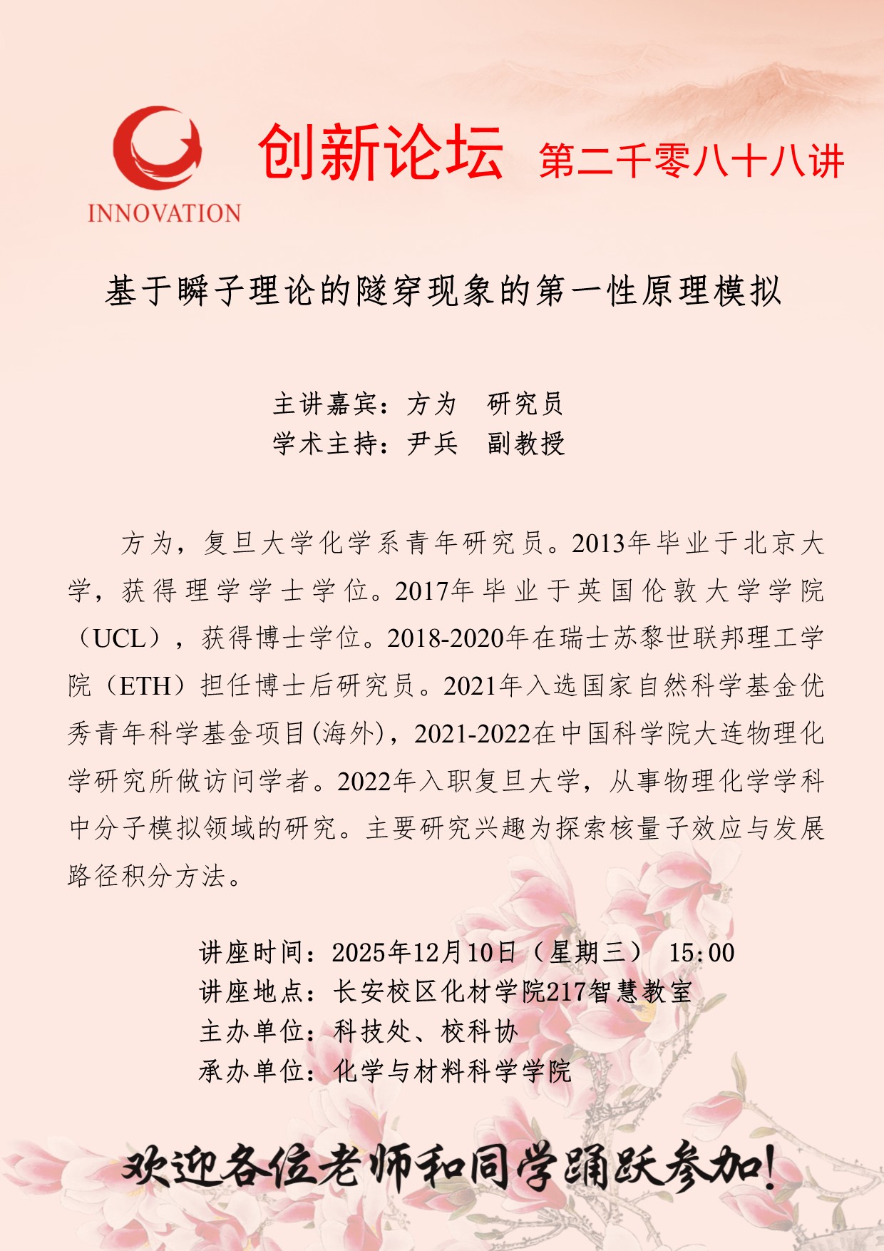 西北大学创新论坛第二千零八十八讲:基于瞬子理论的隧穿现象的第一性原理模拟