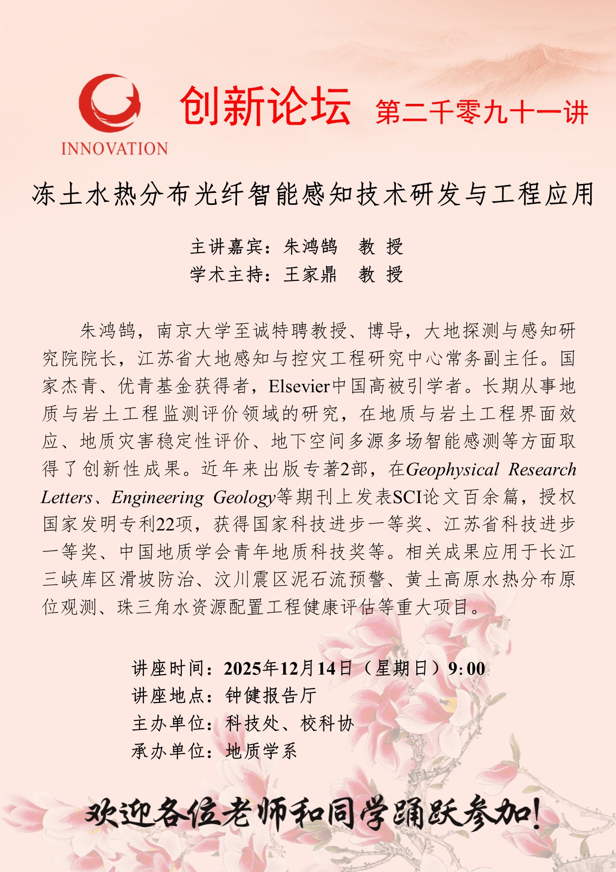 西北大学创新论坛第二千零九十一讲:冻土水热分布光纤智能感知技术研发与工程应用