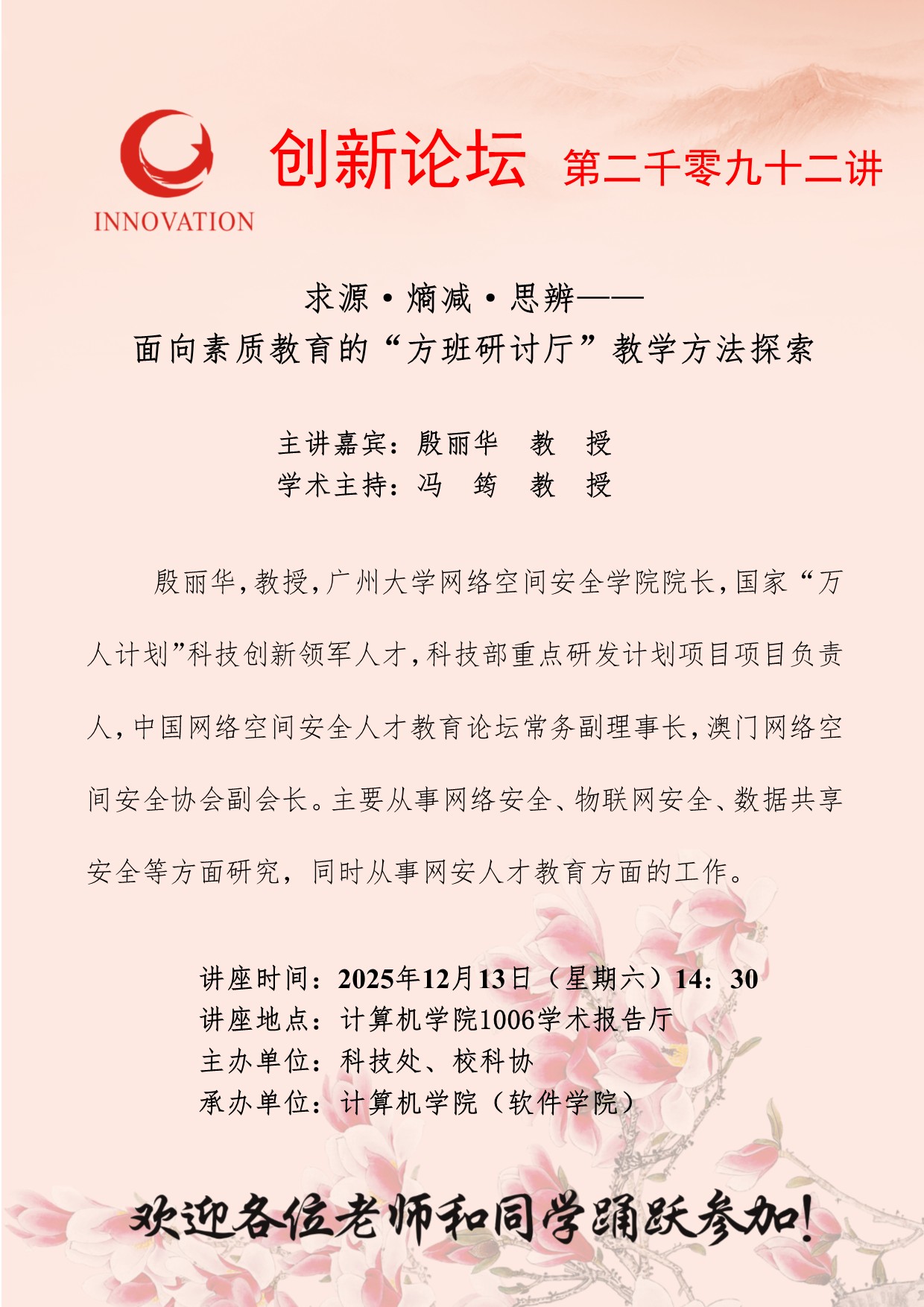 西北大学创新论坛第二千零九十二讲:求源·熵减·思辨——面向素质教育的“方班研讨厅”教学方法探索