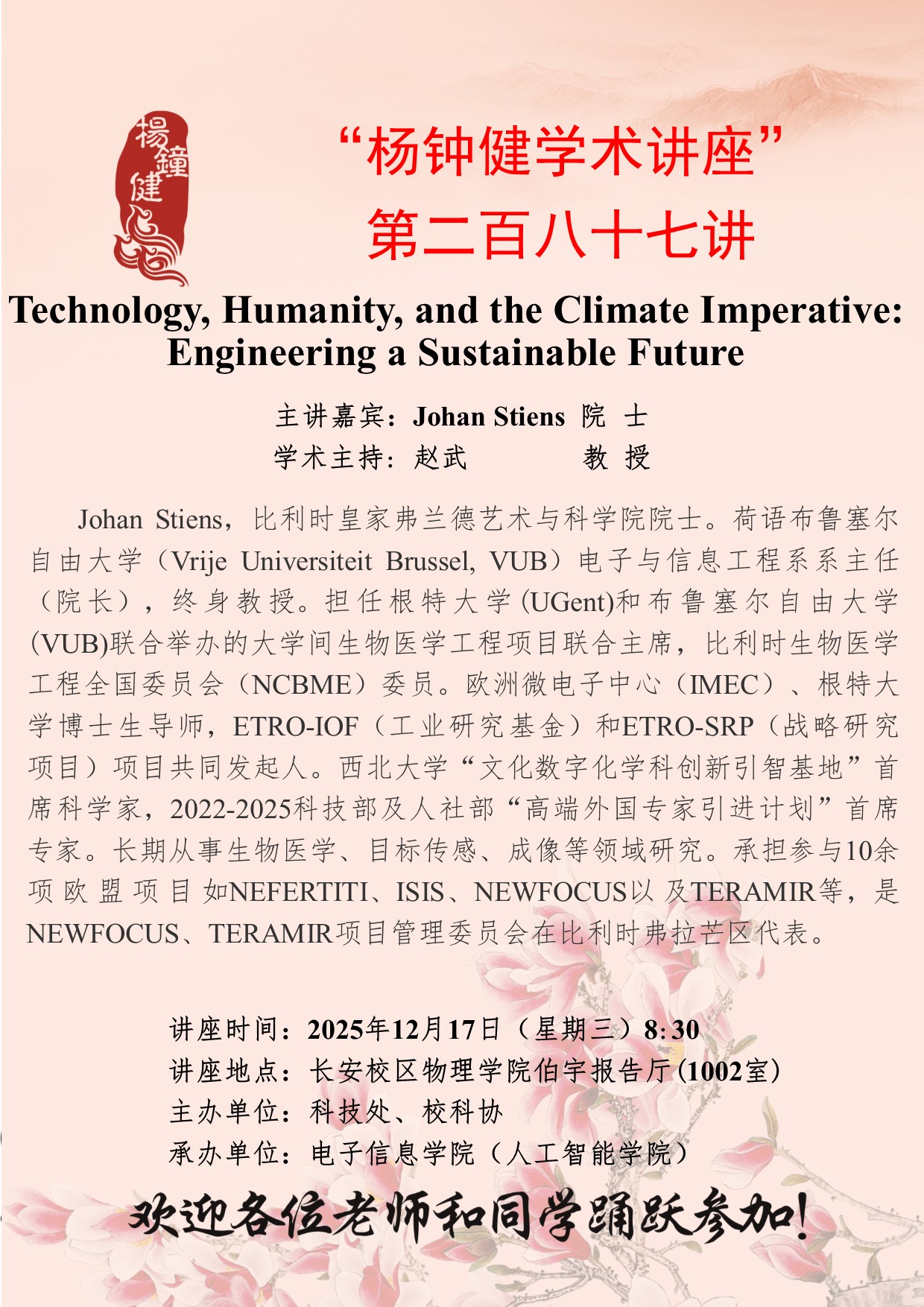 当前位置: 网站首页 > 讲座预告 > 正文 “杨钟健学术讲座”第二百八十七讲:Technology, Humanity, and the Climate Imperative: Engineering a Sustainable Future 浏览量:时间:2025-12-15