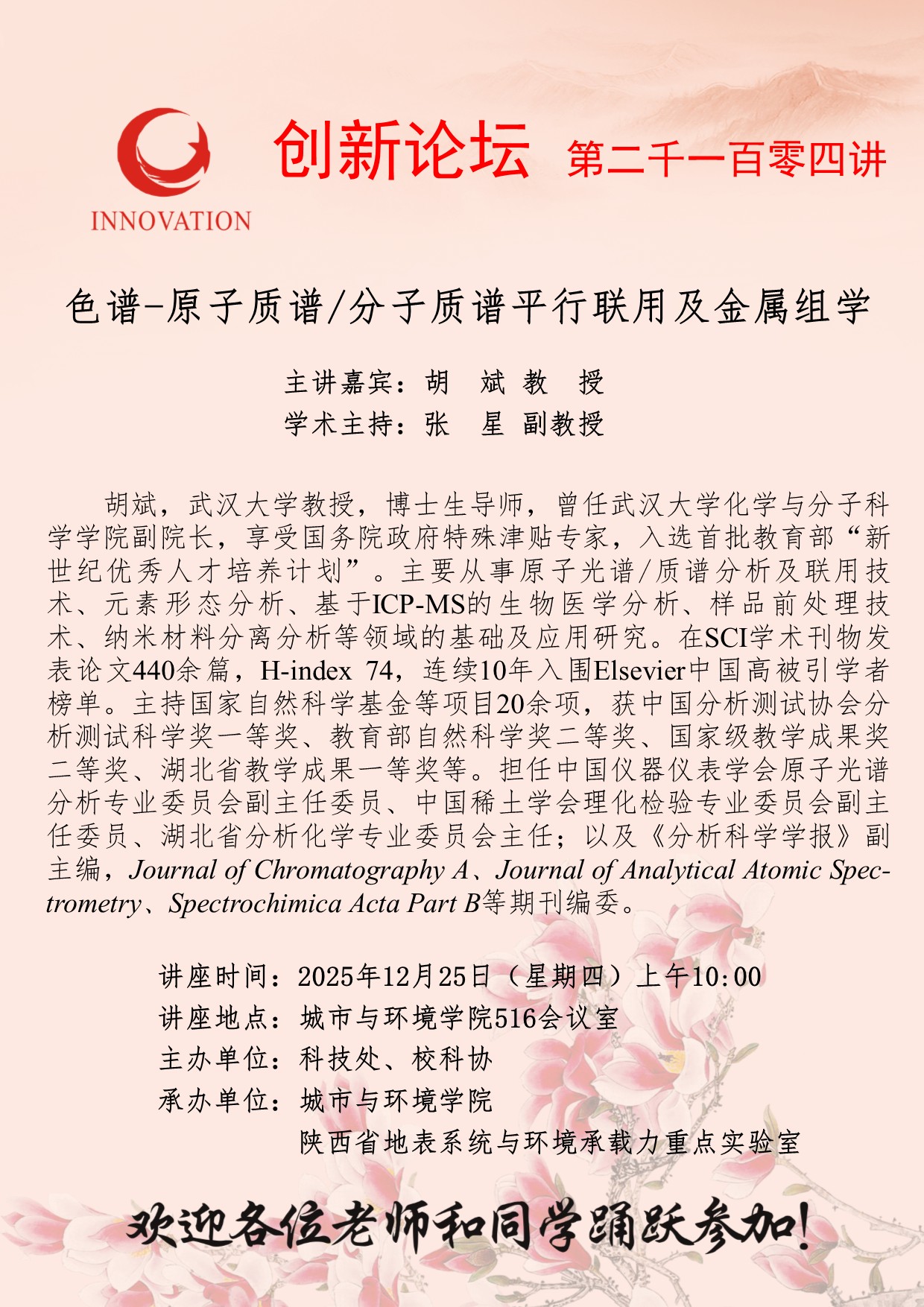 西北大学创新论坛第二千一百零四讲:色谱-原子质谱/分子质谱平行联用及金属组学
