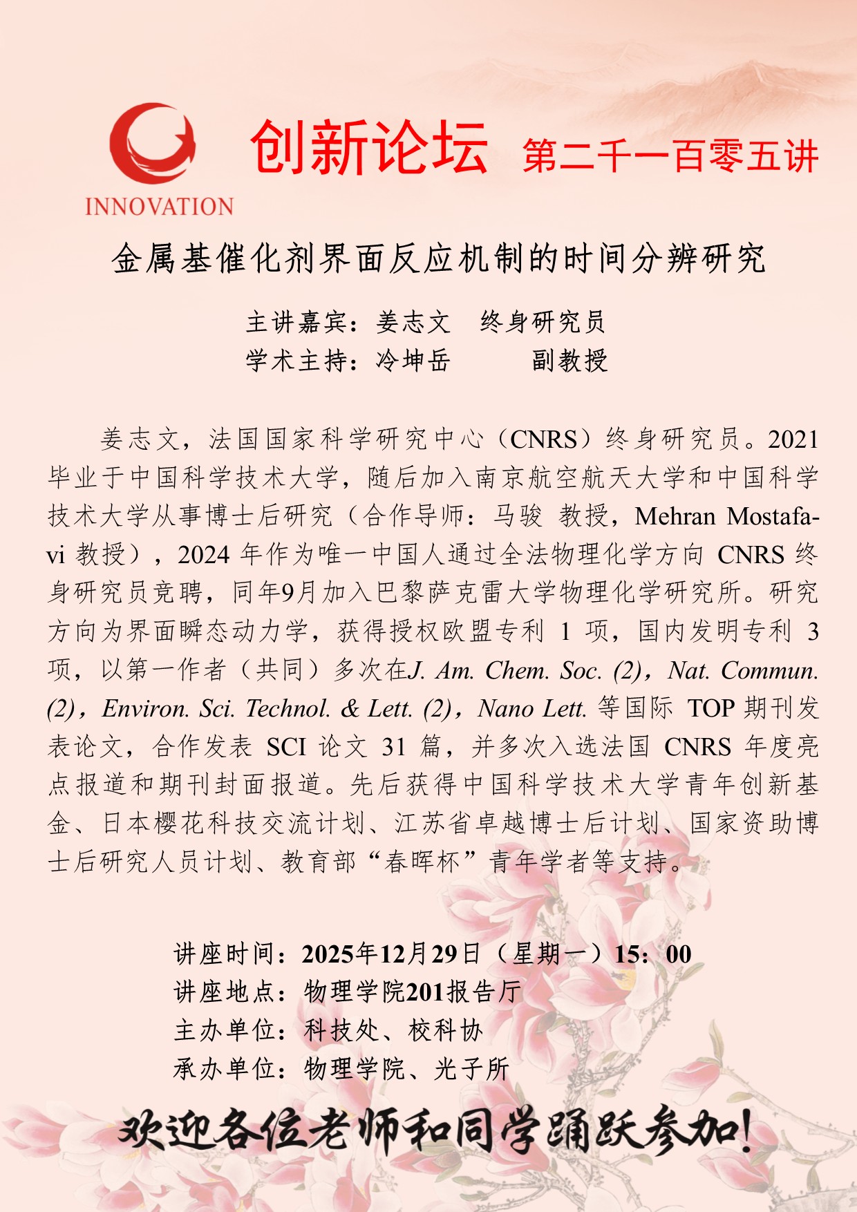西北大学创新论坛第二千一百零五讲:金属基催化剂界面反应机制的时间分辨研究