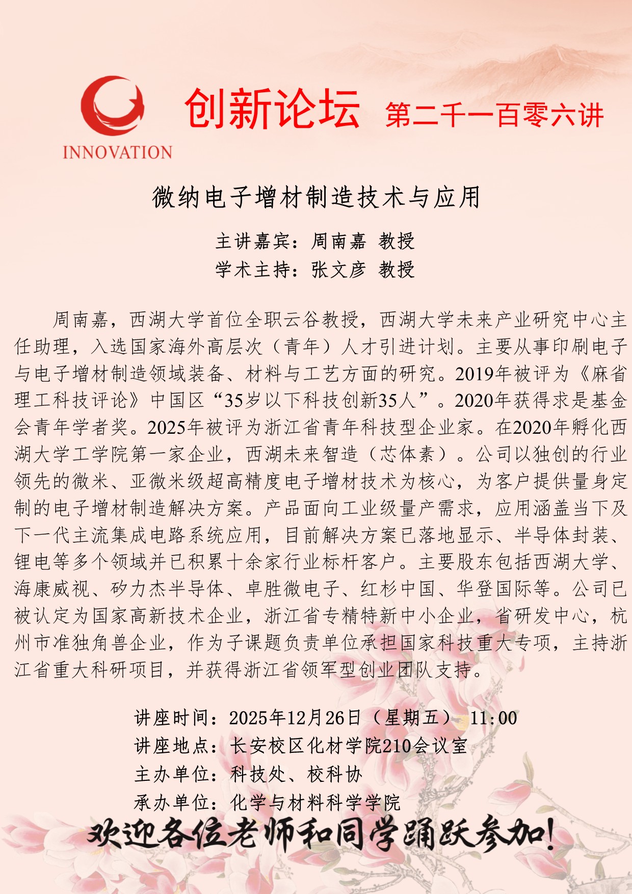 西北大学创新论坛第二千一百零六讲:微纳电子增材制造技术与应用