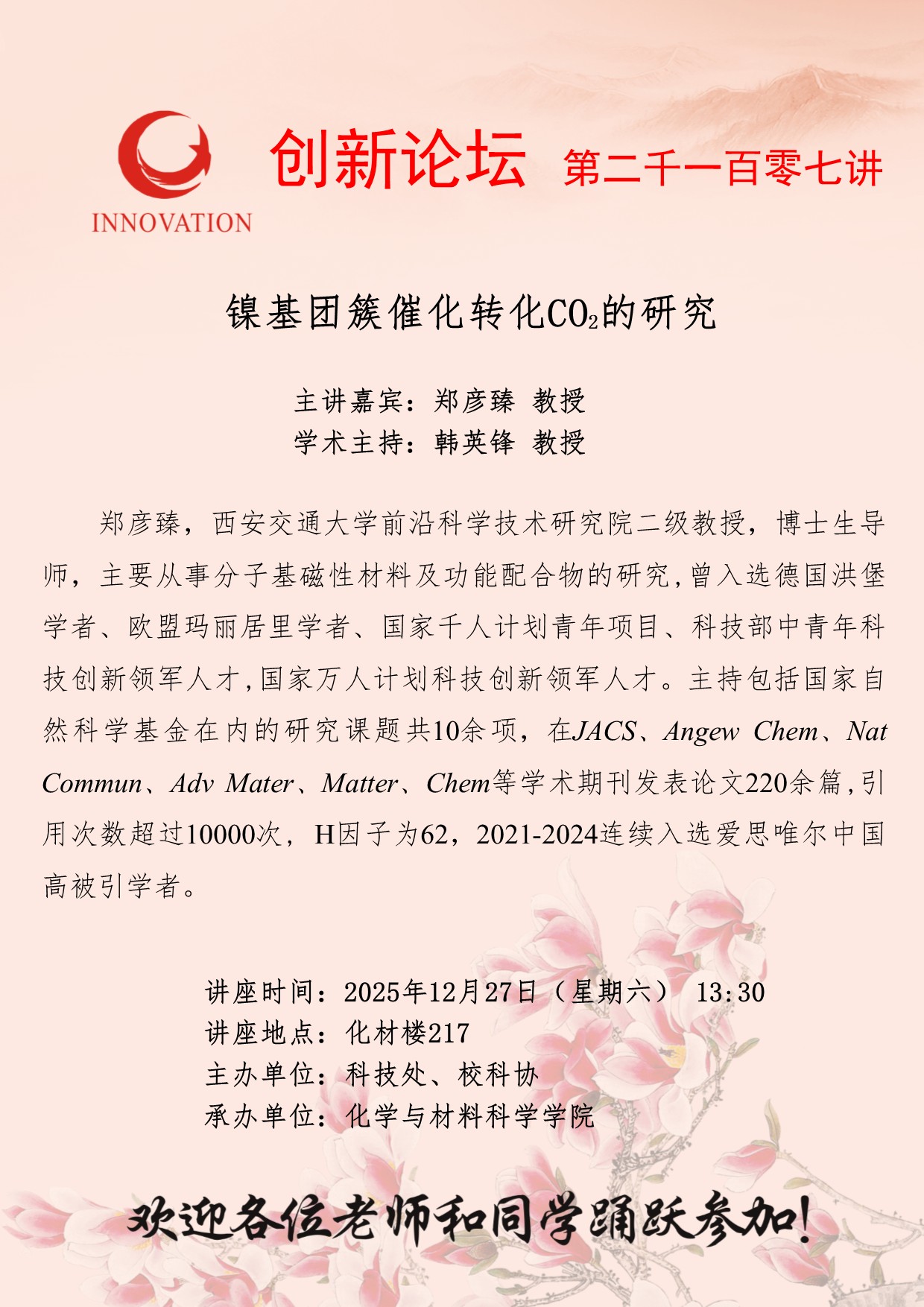西北大学创新论坛第二千一百零七讲:镍基团簇催化转化CO2的研究