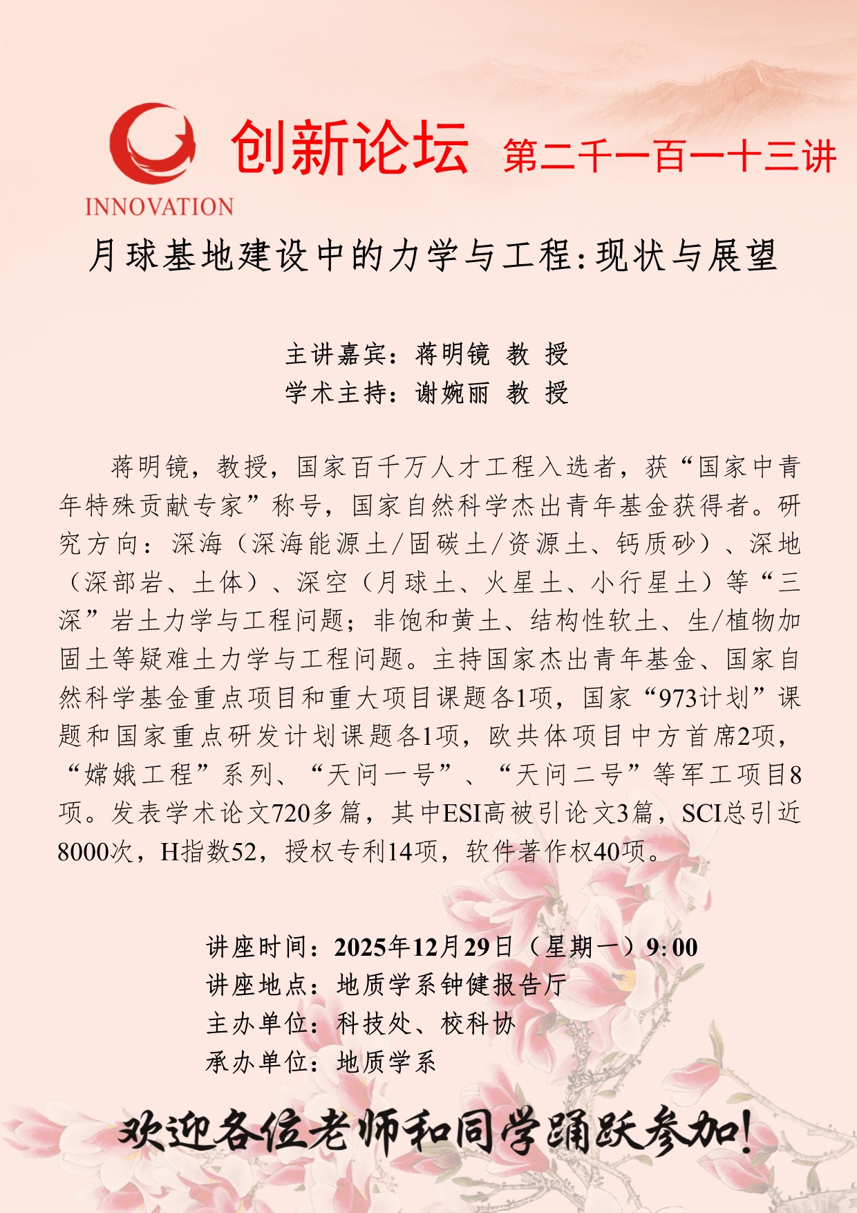 西北大学创新论坛第二千一百一十三讲:月球基地建设中的力学与工程:现状与展望