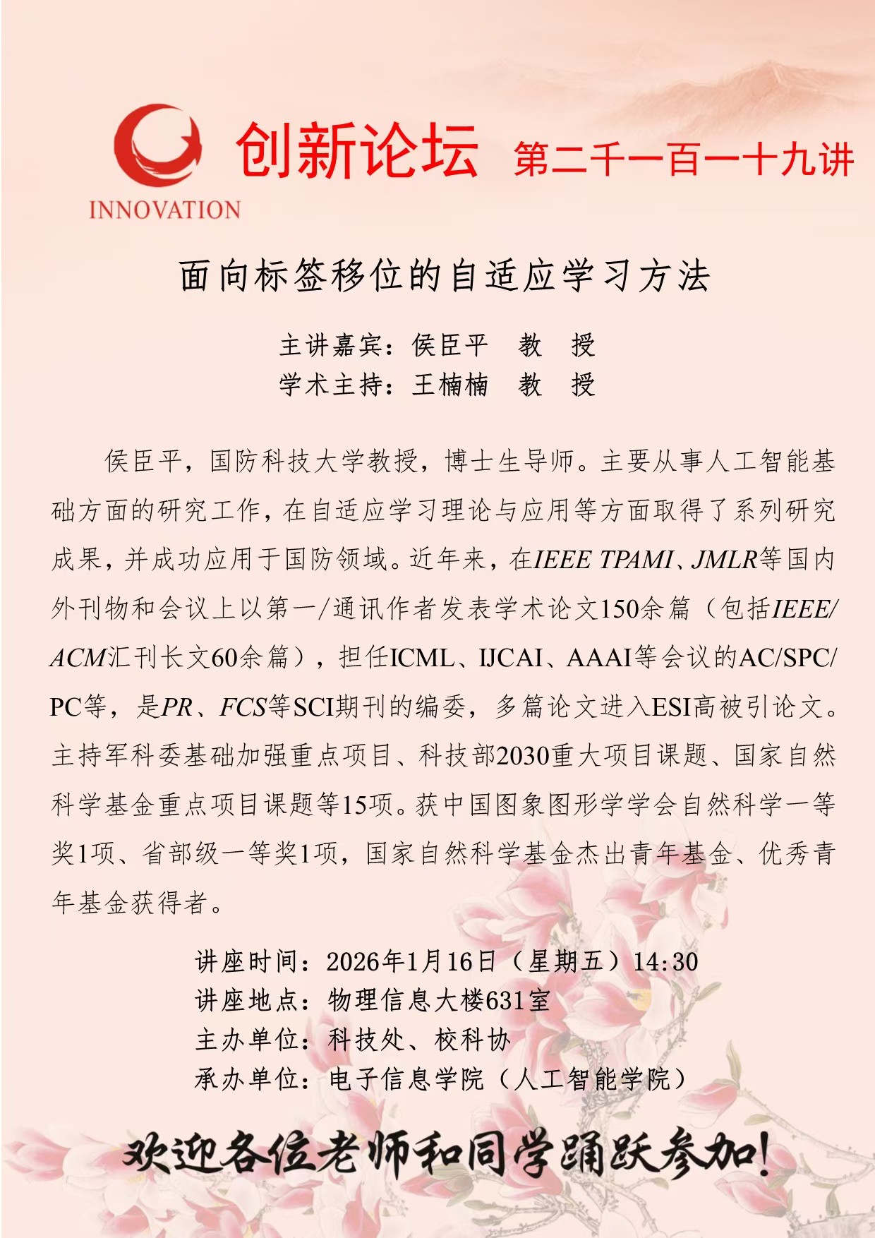 西北大学创新论坛第二千一百一十九讲:面向标签移位的自适应学习方法