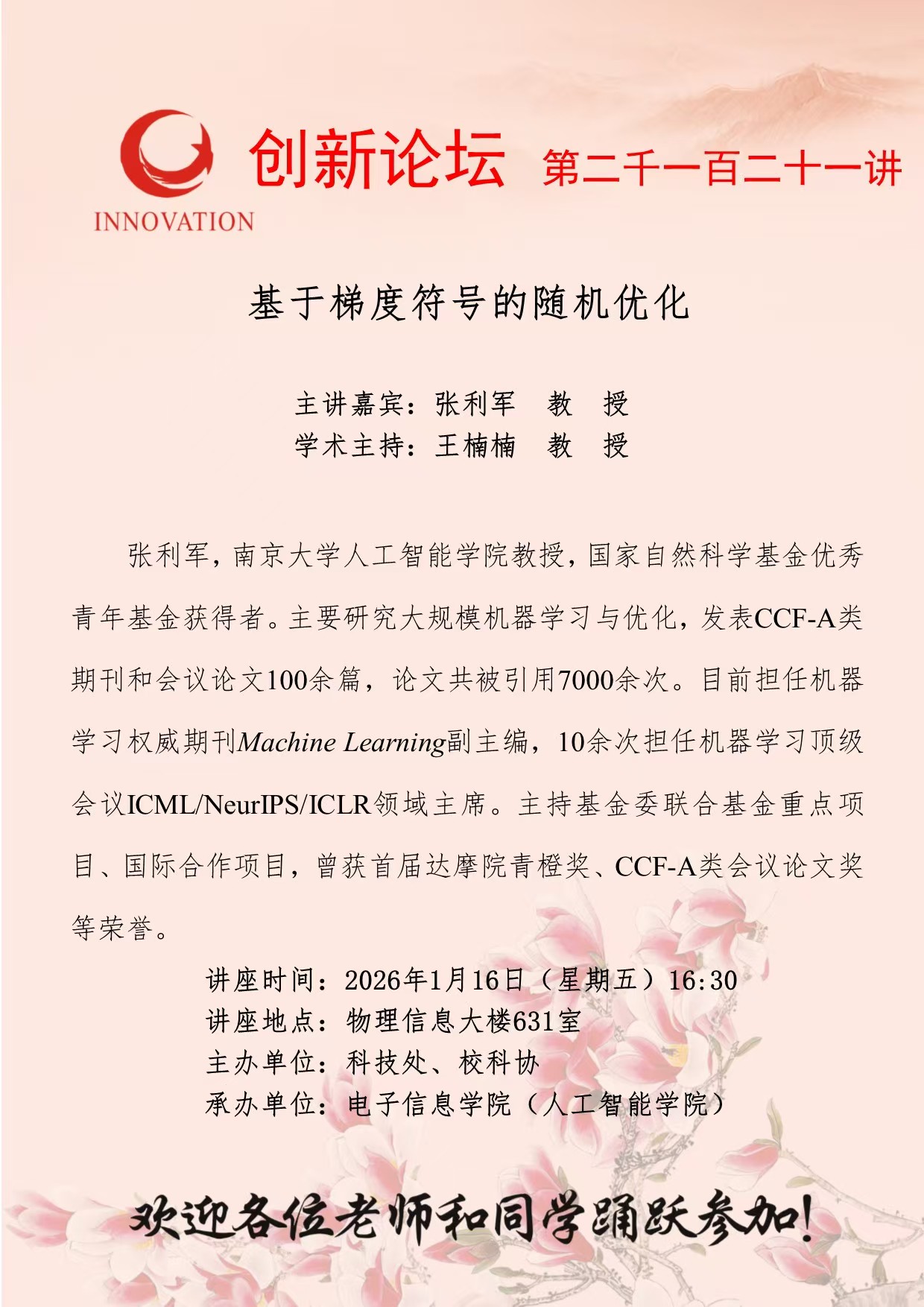 西北大学创新论坛第二千一百二十一讲:基于梯度符号的随机优化