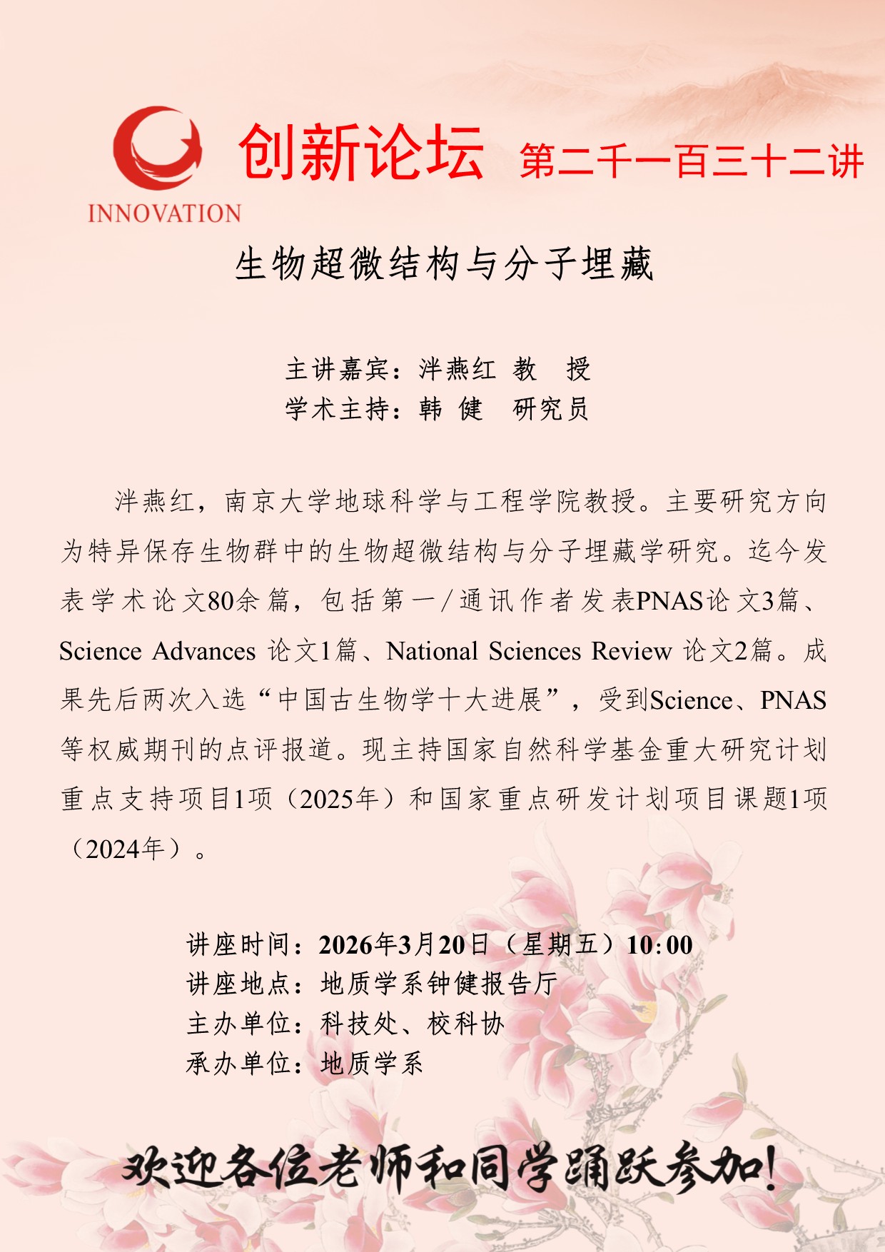 西北大学创新论坛第二千一百三十二讲:生物超微结构与分子埋藏