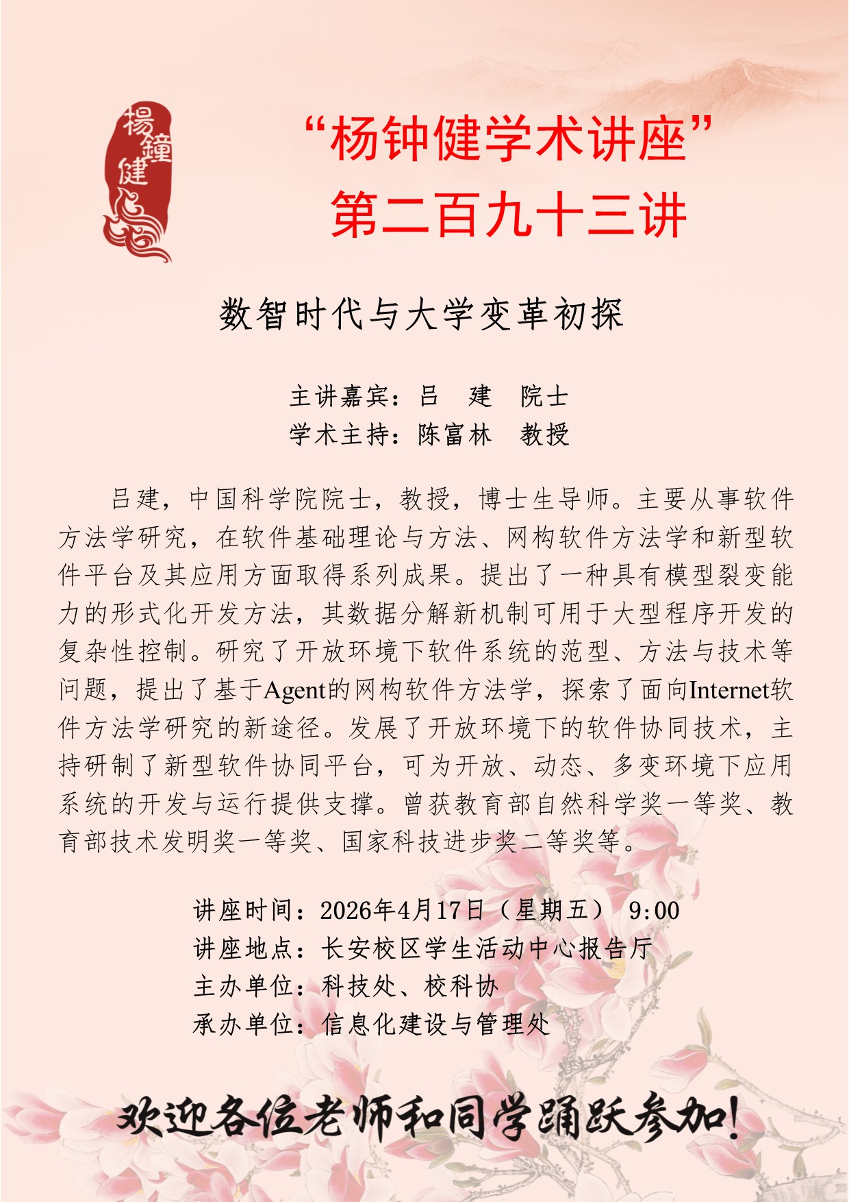 “杨钟健学术讲座”第二百九十三讲:数智时代与大学变革初探