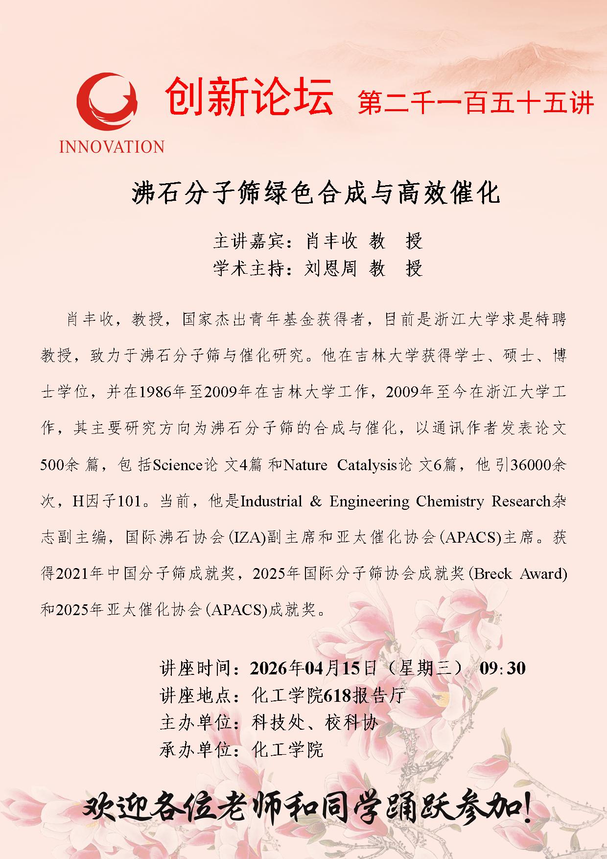 西北大学创新论坛第二千一百五十五讲:沸石分子筛绿色合成与高效催化
