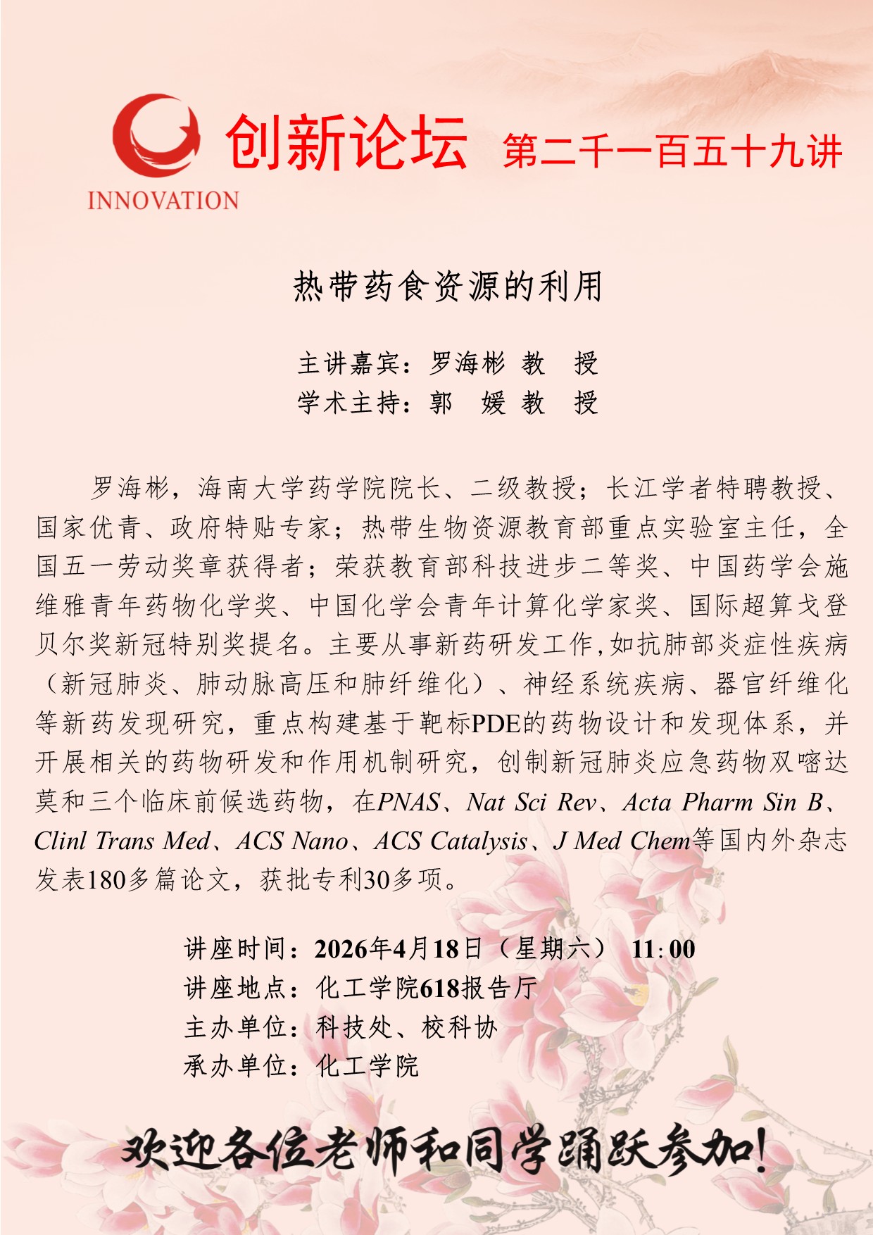 西北大学创新论坛第二千一百五十九讲:热带药食资源的利用