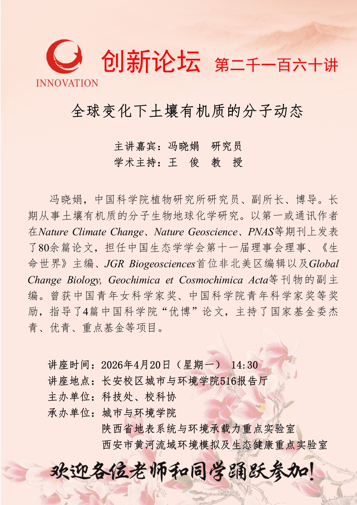 西北大学创新论坛第二千一百六十讲:全球变化下土壤有机质的分子动态