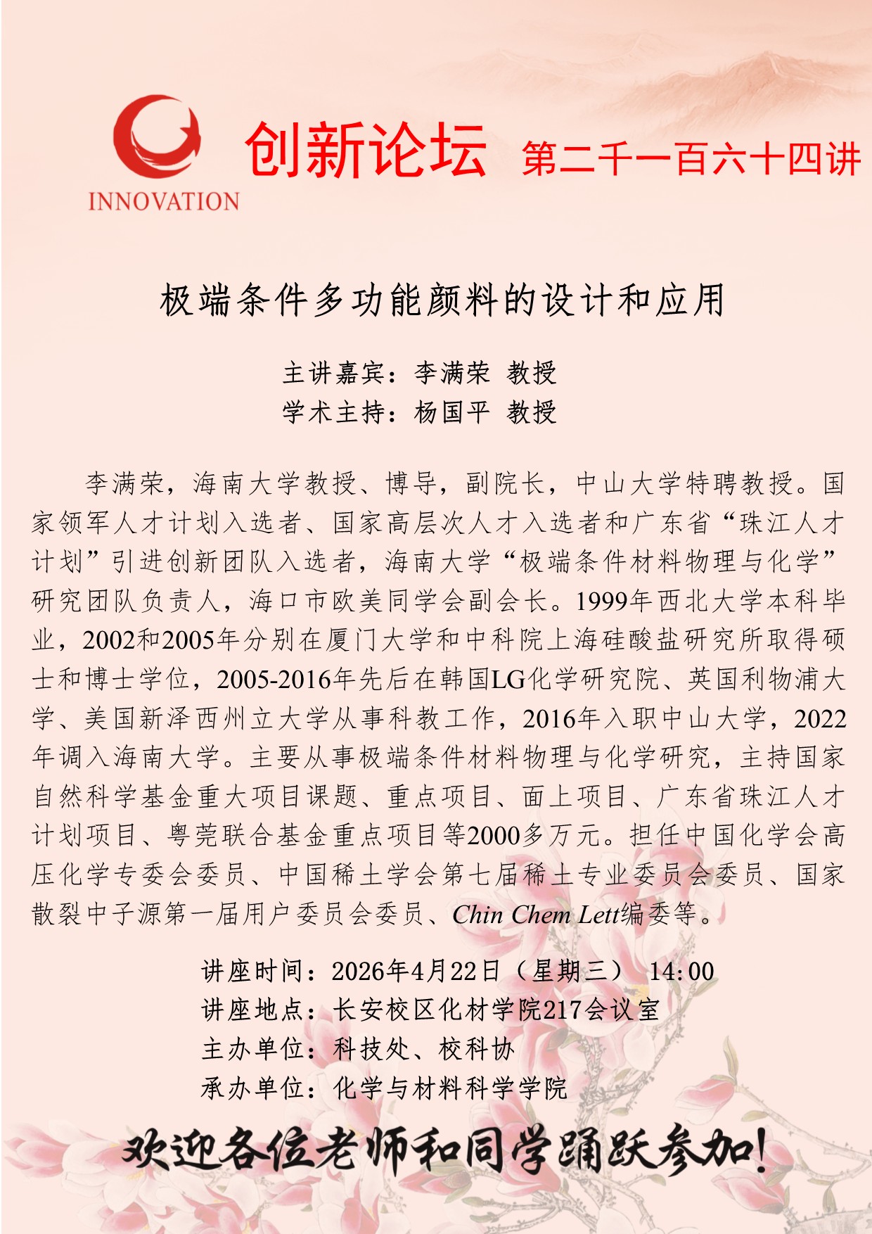 西北大学创新论坛第二千一百六十四讲:极端条件多功能颜料的设计和应用
