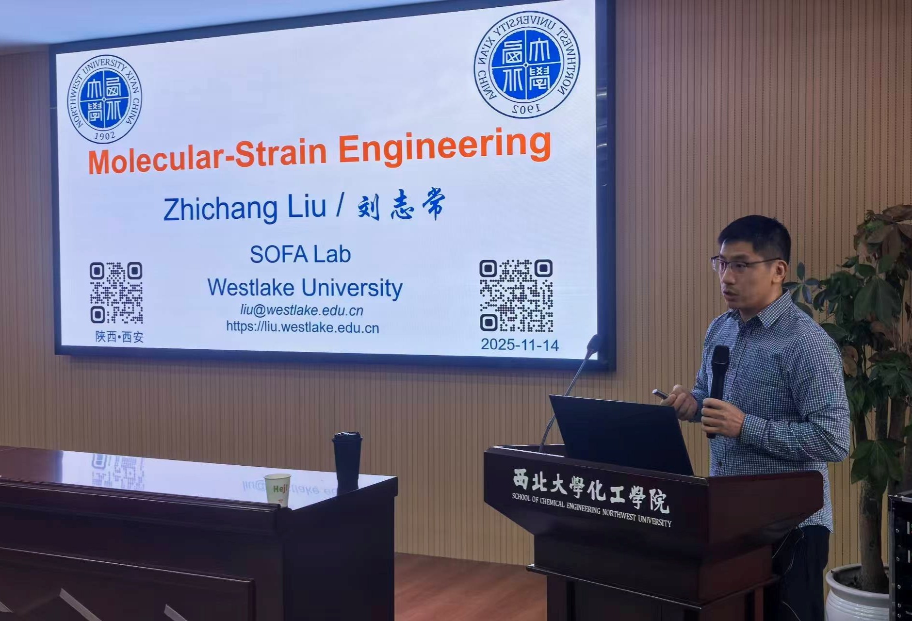 11月14日,由我校科技处、校科协主办,化工学院承办的“西北大学创新论坛”第二千零四十六讲在长安校区化工学院618报告厅举行。西湖大学刘志常研究员应邀来校为师生作了题为“分子张力工程”的报告。我校相关专业师生代表参加了报告会。